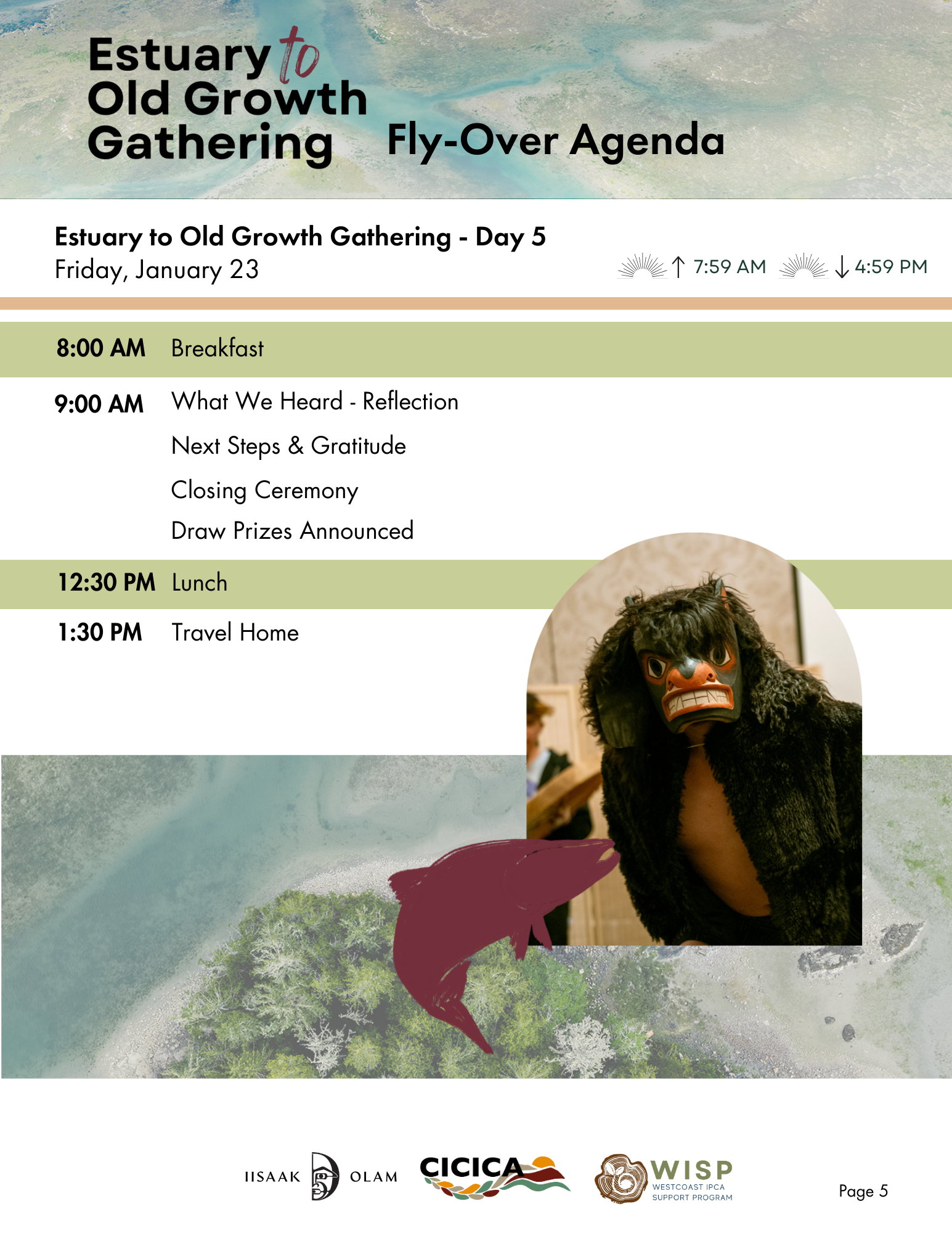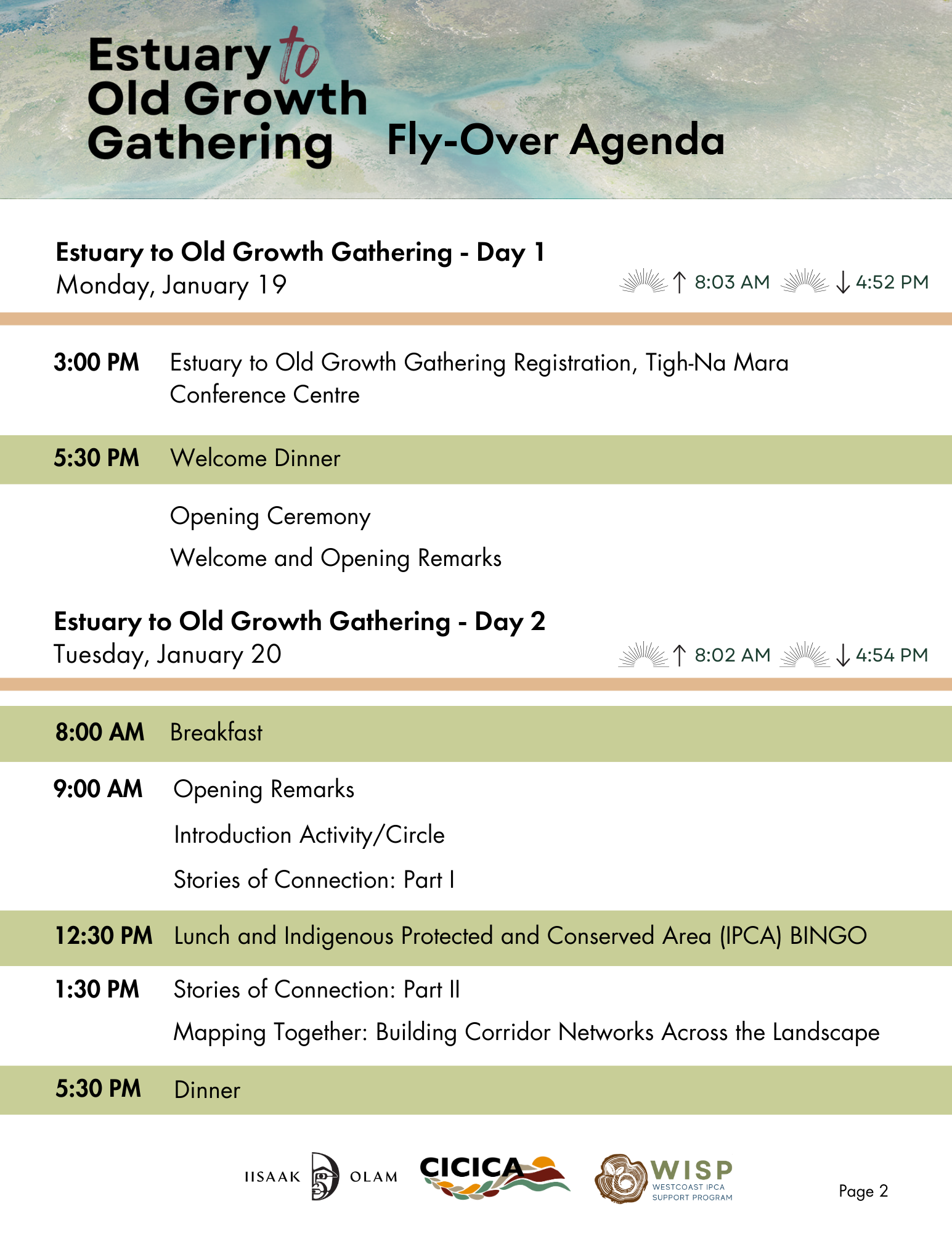 The Estuary to Old Growth Gathering is organized by the IISAAK OLAM Foundation and our sister charity, the Canadian Indigenous Conservation Innovation Centre Association (CICICA), through the Westcoast IPCA Support Program (WISP).